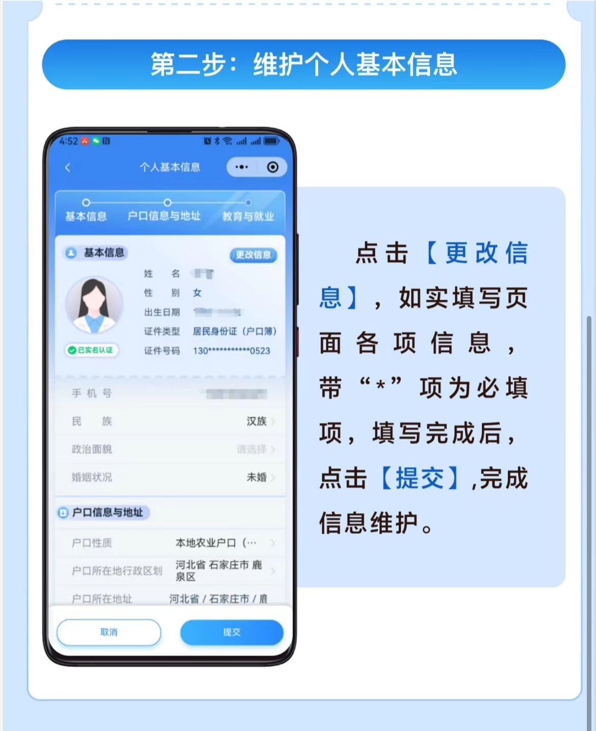 本次信息完善采用线上自助办理方式,方便快捷,详细步骤: