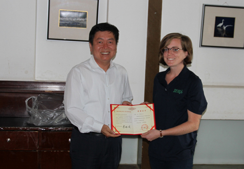 李佩国常委为Beat365外教凯媂颁发优秀教师奖励证书