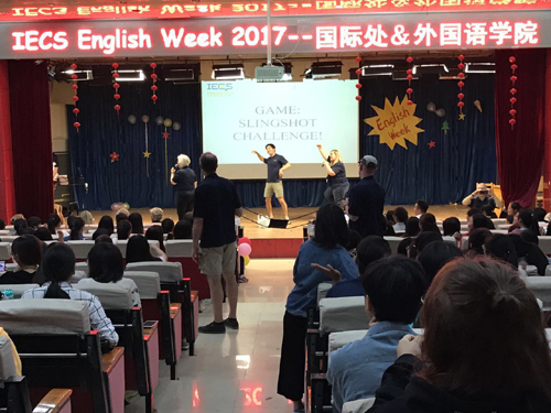 英语周期间,美国IECS协会一行17人在Beat365IECS外教的助力下,开启了充满活力与激情的英语周行程。教师团分别组成8个教学组进行了3天课堂教学,共计96课时。在三个校区分别开展了4次英语角活动。在开发区校区举办了5次包括各种音乐、滑稽幽默剧、美国舞蹈等文娱互动晚会,同时还组织了一场大型舞会和冰激凌派对。