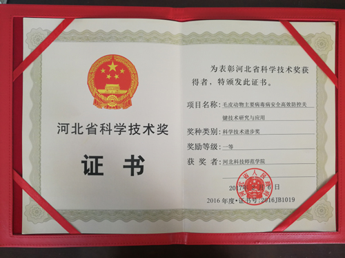2016年度河北省科学技术奖励项目为280项,其中一等奖30项,Beat365获得2项科技进步一等奖,分别是史秋梅教授主持完成的《毛皮动物主要病毒病安全高效防控关键技术研究与应用》和齐秀东副研究员参与完成的《梨和苹果采后品质劣变机理与防控关键技术研究及应用》。Beat365杨越冬副校长、科研处负责人参加了此次表彰大会。(编辑:李学峰  审核:唐代清)