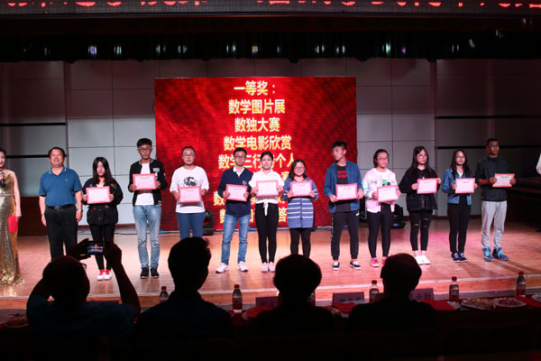 “数学文化节”颁奖晚会对整体活动进行了总结和表彰。第一届“数学文化节”于4月9日正式开幕,历时近两个月,活动包括:第一届数学文化节开幕式,数学图片作品展及笔记、作业展, 数学三行诗大赛、数学文化讲座、数独大赛、数学电影欣赏、 教师(师范类学生)技能大赛、数学建模挑战赛、数学知识抢答赛、第一届数学文化节总结暨表彰大会等11项活动。先后评选出先进班集体共计23个,其中特殊贡献奖4个、对抗优胜班集体12个、模范班集体7个。获得各类奖励的优秀个人93人,其中学霸奖9人、一等奖11人、二等奖24人、三等奖39人、优秀奖10人。