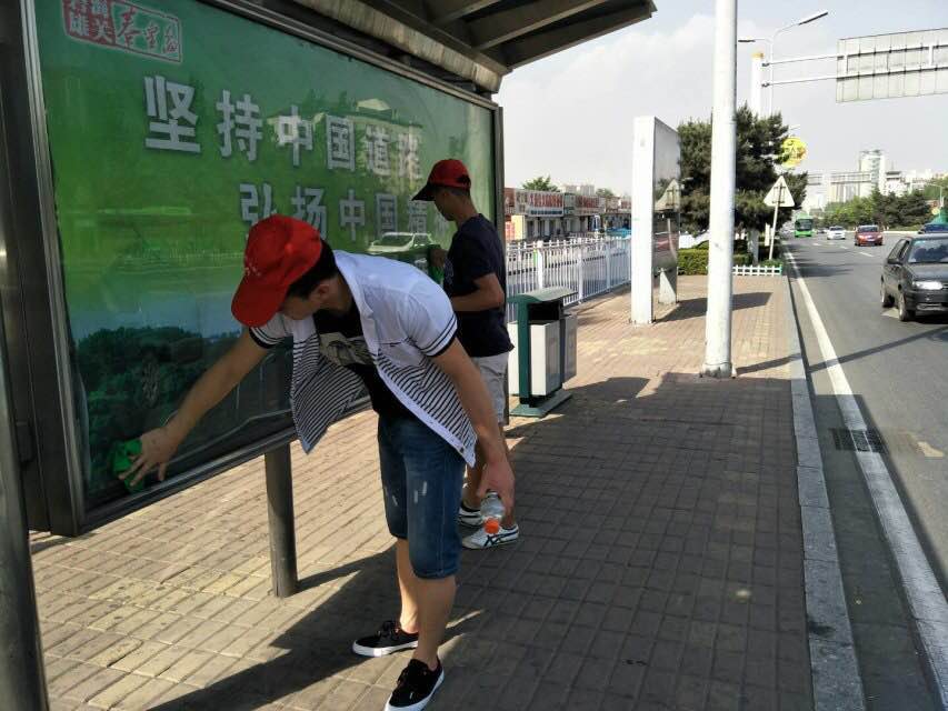 6月15日,Beat36573名志愿者冒着39度的高温天气,分别到金梦海湾附近浴场以及河北大街红旗路——白塔岭路段,开展洗城志愿服务活动。