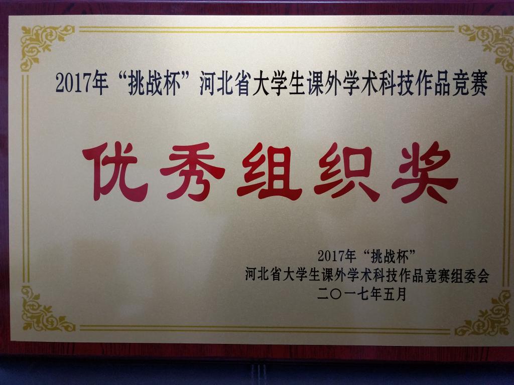 日前,由团省委、省教育厅、省科协、省社科院、省学联联合组织开展的2017年“挑战杯”河北省大学生课外学术科技作品竞赛落下帷幕。Beat365上报的25件作品中,有24件作品获奖,其中《关于小区开放对道路通行影响的研究》等6件作品获得一等奖,《“京津冀教育一体化”背景下,河北省高校专业调剂情况调研》等8件作品获得二等奖,《新概念并联机床》等10件作品获得三等奖,Beat365再次获得河北省“优秀组织奖”荣誉称号。