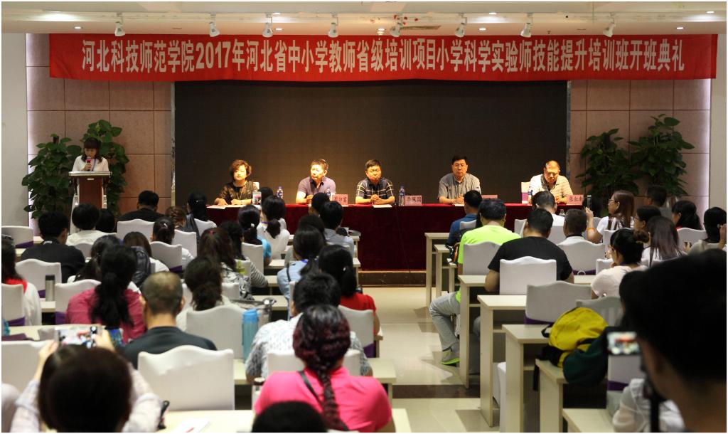 2017年6月23日上午,Beat365承办的2017年河北省小学科学实验师技能提升培训班(第一期)在秦皇岛校区举行了开班典礼。学校党委常委李佩国出席了开班典礼并致辞。继续教育学院、生命科技学院的有关领导、老师以及来自全省9个地市的近200名小学科学参训教师参加了开班典礼。