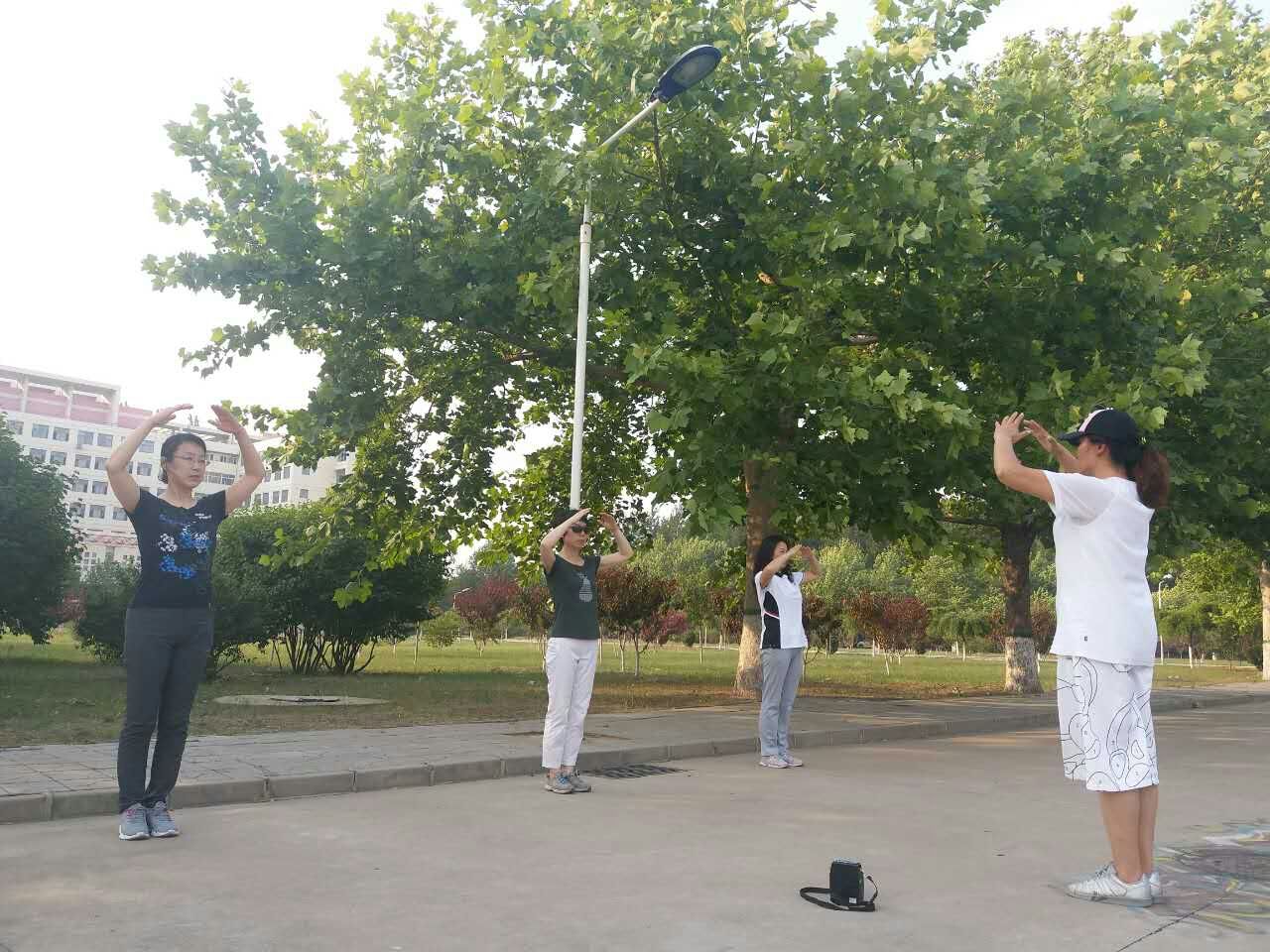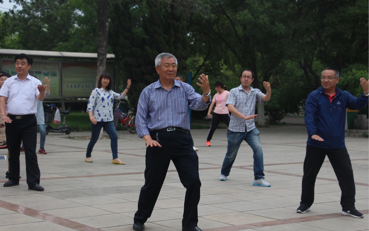 校领导和教职工一起练习太极拳