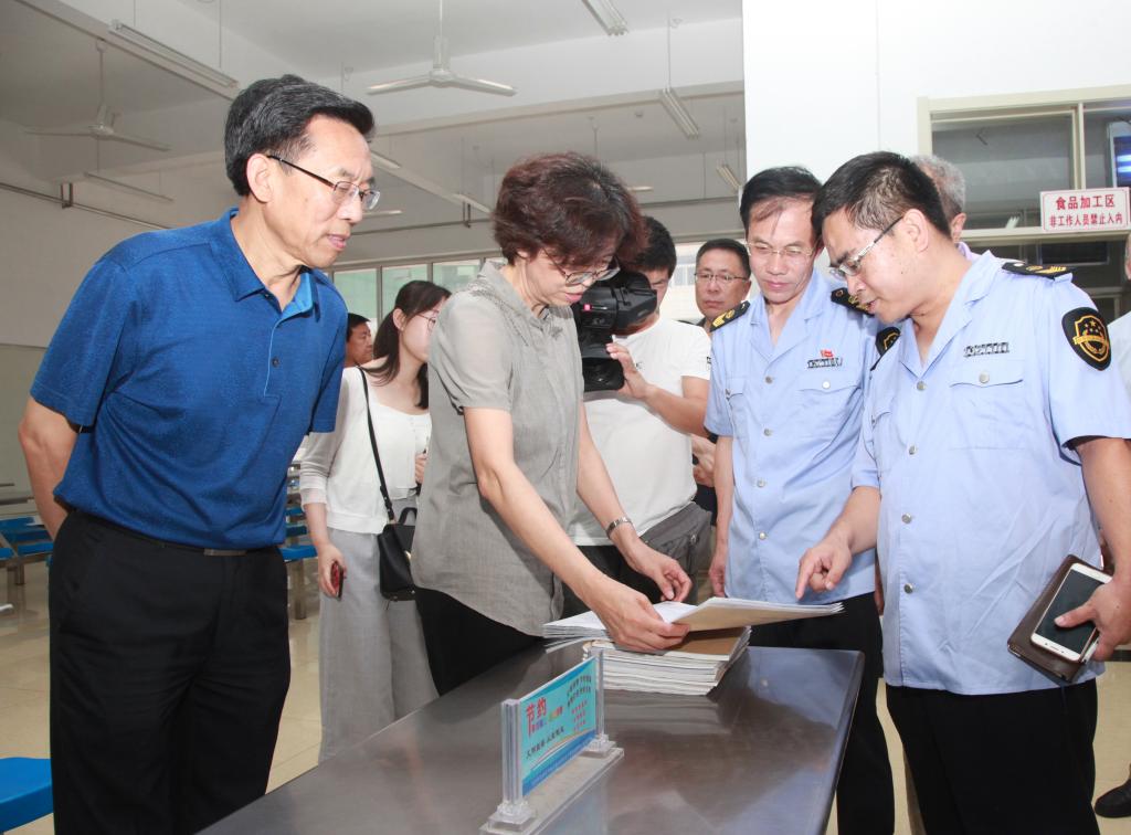 孙立军一行深入学生食堂,认真查看食堂环境卫生,进入操作间仔细检查了食品操作、明厨亮灶等环节以及食品库房的存放情况,对食品安全规章制度的落实、食堂餐饮服务许可证、食堂从业人员健康管理、食品进货渠道、餐具清洗消毒措施、食品生产加工环节、操作间硬件设施、食品安全知识宣传教育以及学校食堂食物安全事故应急预案等情况进行了实地查看和档案检查。