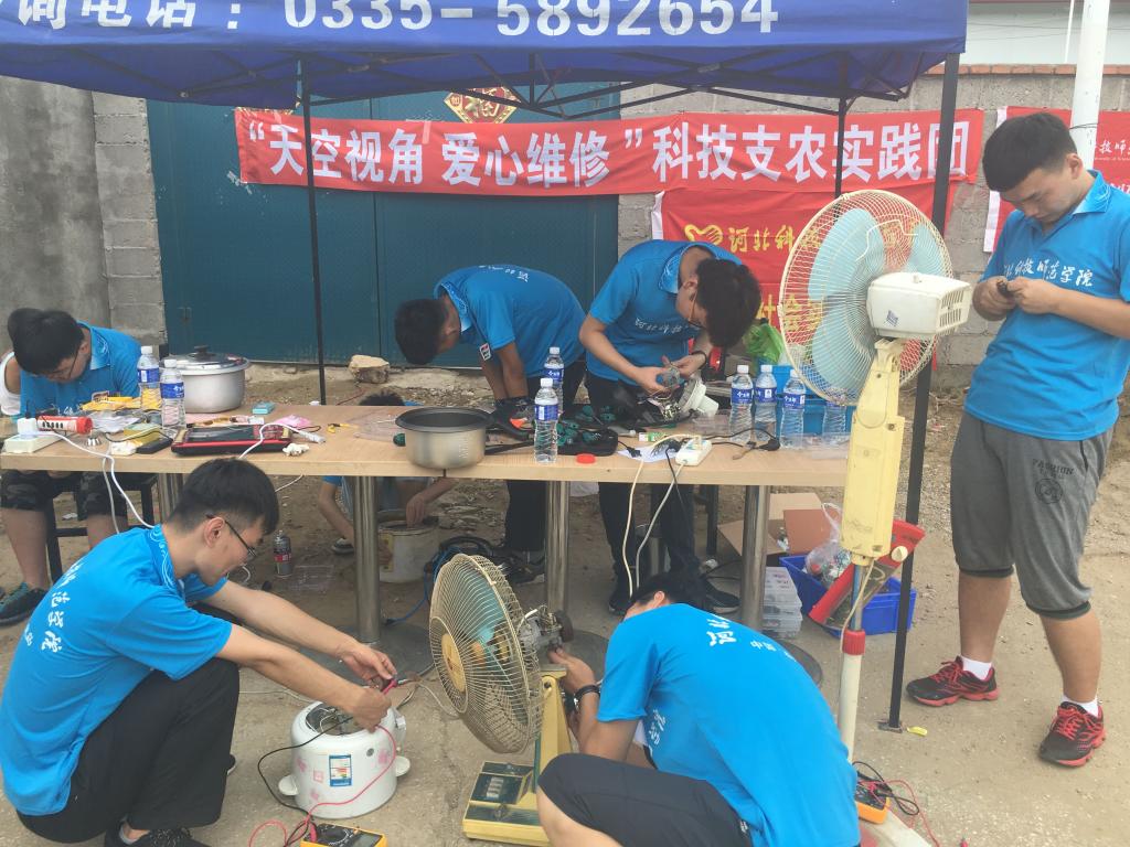 2017年7月15日,Beat365唯一官方网站机电工程学院“天空视角,爱心维修”暑期社会实践小队翻山越岭来到青龙精准扶贫村张庄,经过前期宣传,后期维修,克服了种种困难,大学生志愿者们在实践中修炼专业技能,体验到浓浓地乡情,和谐融入父老乡亲之中,为炎炎酷暑中的村民送去清风。