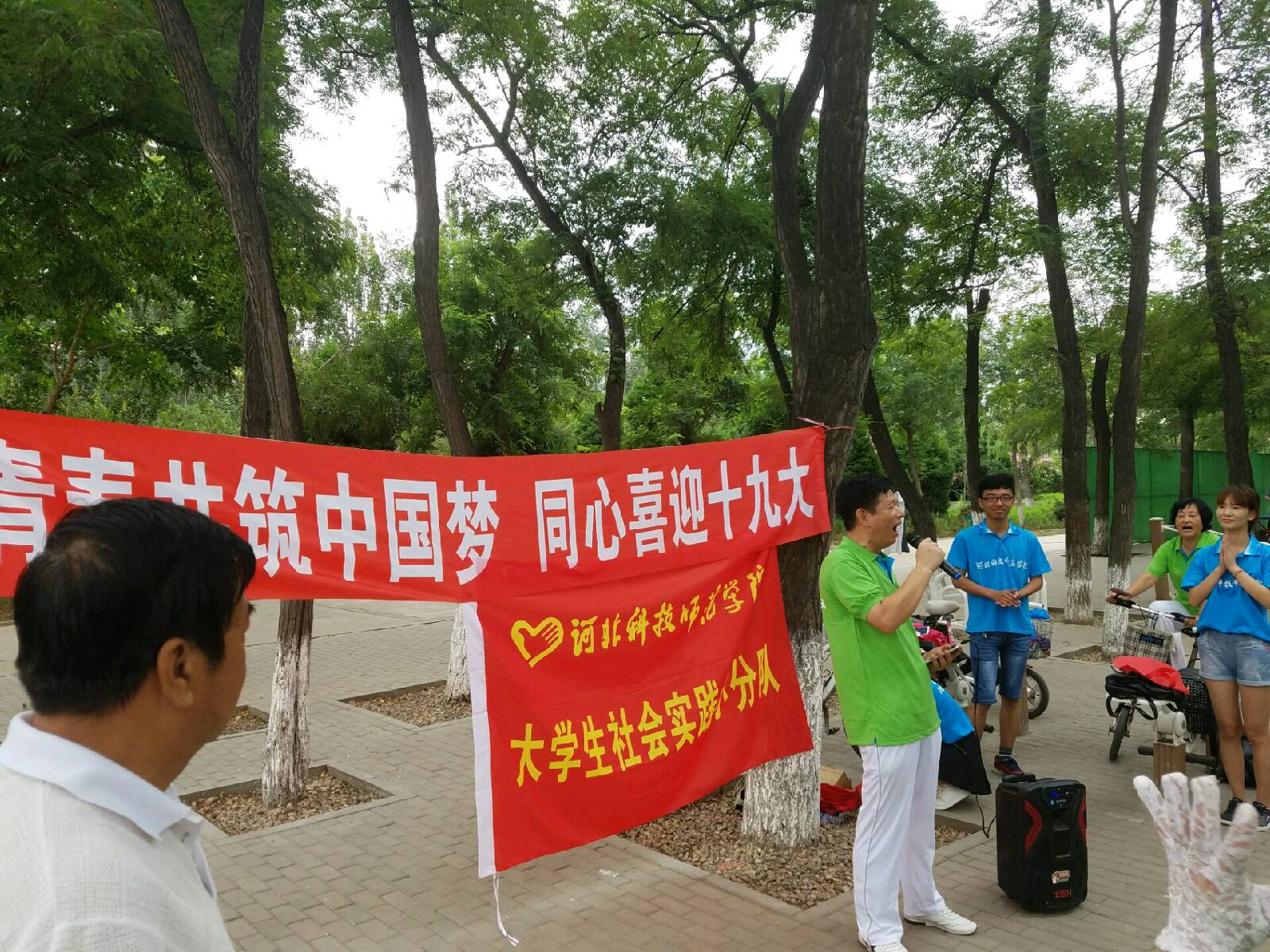 实践团成员分别走访了汤河公园、学校家属区、森林逸城公园、奥林匹克公园、海边、森林逸城小区、玉柴公交汽车站等多个地点,开展了形式多样的宣讲活动。实践团组织观看了爱国影片《建党伟业》,重温党的发展历史和革命历程。发放历届党代会宣传单,回顾党史,了解革命先烈的红色青春。邀请市民诵读红色诗歌和演唱红色歌曲,弘扬老一辈革命家的爱国情怀。组织市民默写“四个自信”和“社会主义核心价值观”,坚定不忘初心跟党走的理想信念。讲解自制宣传板,从科技、教育、经济等角度,总结十八大以来党和国家取得的阶段性成果。组织有奖知识问答,促进市民了解近年来国家经济发展的阶段性成果。