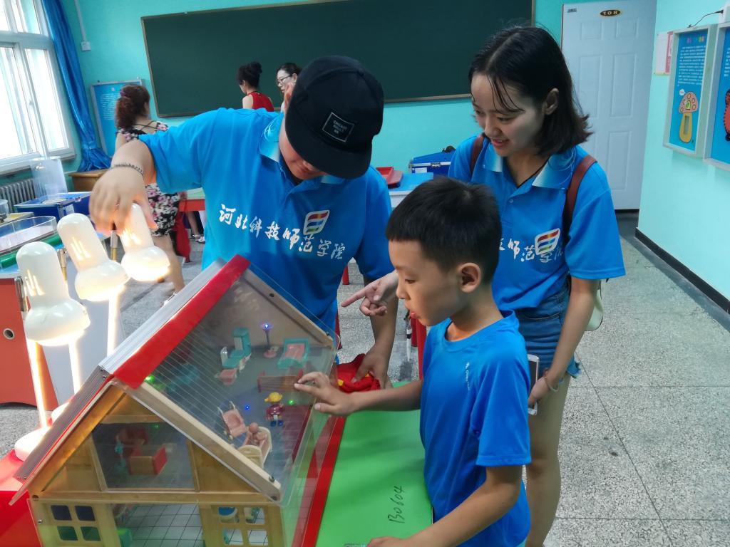 队员们被市民高涨的热情深深地打动了,受到了很大的鼓舞,在接下来几天中,更是卯足了劲头,面向更多的社会群体,贡献自己的力量。在科师家属院播放科技电影《太空旅客》,宣传科技应该走进生活,更应服务生活;在海港区青少年活动中心,维修馆内物品,并与小朋友一起探索木流牛马、鲁班锁、磁感线及9D电影的奥秘;在教育机构,针对学龄儿童进行防震演练、趣味实验、科学家及感应起电机的原理讲解等一系列的科普宣传;在森林逸城公园讲解3D打印机、隐形衣、太阳能电池等科学前沿技术;在海边针对夏季家庭出行时需要注意事项,以及海里游泳如何防海蜇、防水母等安全知识的普及,市民们积极响应,纷纷参加“科普齐努力,安全添份力”主题签名活动。队员们在蔚蓝的海边,放飞了签满市民名字的风筝,希望安全意识永远高悬于每一位市民的心中。