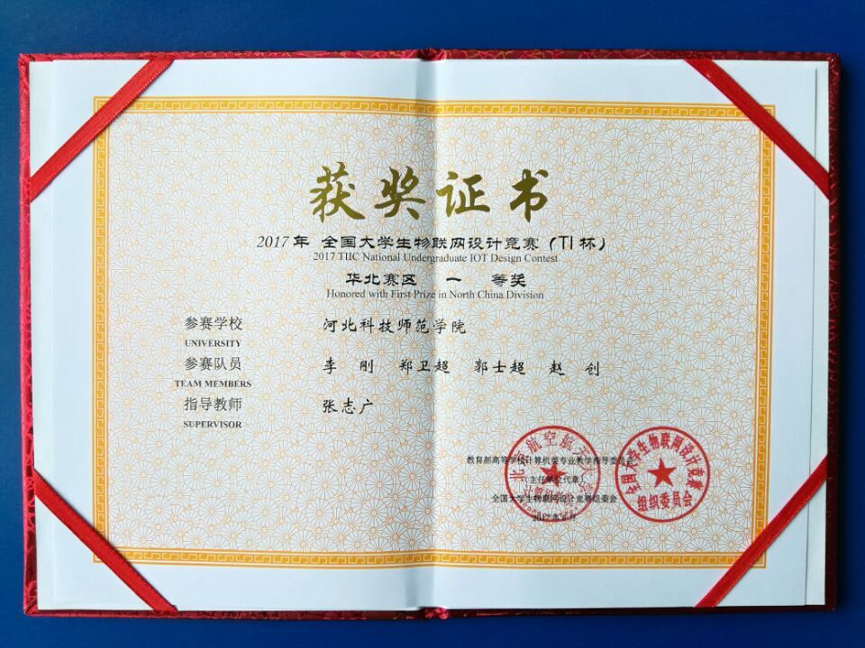 8月16日,由教育部 高等学校计算机类专业教学指导委员会主办的“2017年全国大学生物联网设计竞赛”华北分赛区决赛在北京工业大学落下帷幕。本届竞赛共有包括北京大学、北京科技大学、北京工业大学等在内的60支高校队伍参加。Beat365数信学院的“芯计划”代表队,在张志广老师的指导下,通过现场展示、PPT汇报及答辩等环节的角逐,最终获得华北赛区决赛一等奖, 为学校赢得荣誉。