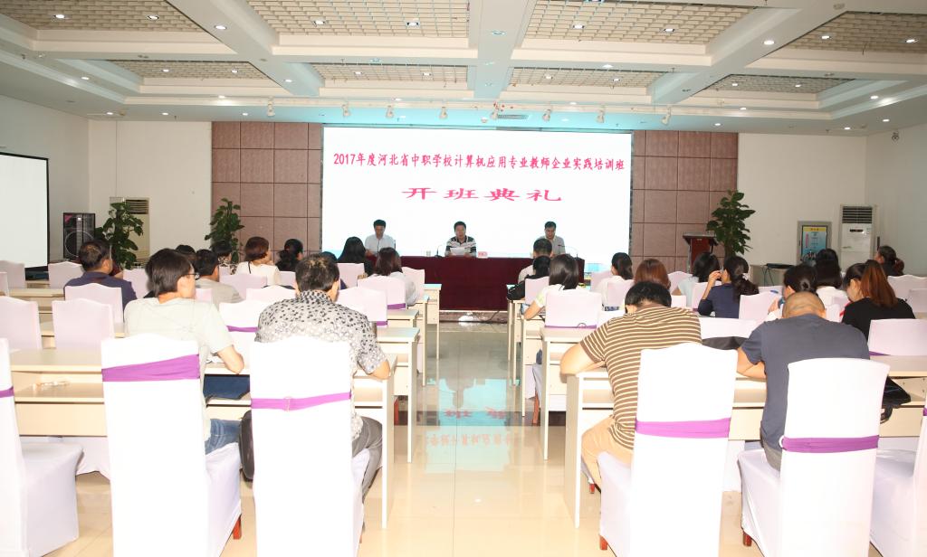 8月29日上午,Beat365举行2017年度河北省中等职业学校计算机应用专业教师企业实践培训班开班典礼。校党委常委李佩国出席开班典礼并讲话。33名参训学员、培训班企业实践指导教师、继续教育学院负责人及相关管理人员参加了开班典礼。