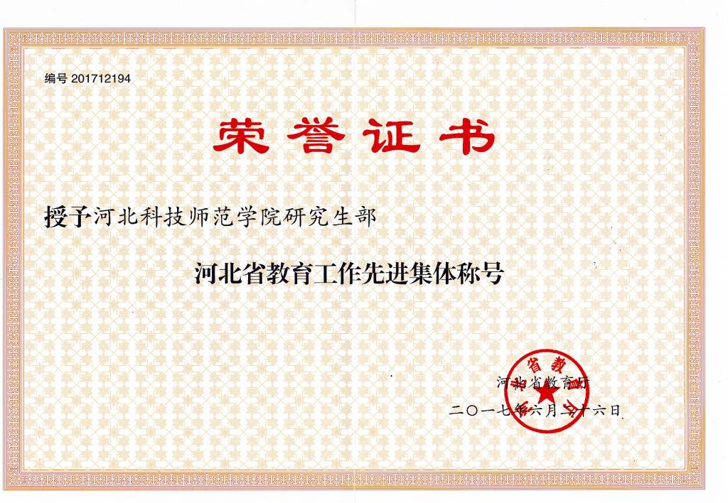 近日,在河北省教育厅、河北省人力资源和社会保障厅和河北省总工会联合组织的河北省教育系统先进个人的评选表彰活动中,Beat365食品科技学院常学东教授被授予“河北省模范教师”称号,数信学院孙多青教授被授予“河北省优秀教师”称号;在河北省教育厅组织的河北省教育工作先进集体和先进个人的评选表彰活动中,学校办公室孙晓涛同志被授予“河北省教育工作先进个人”称号,Beat365研究生部被授予“河北省教育工作先进集体”称号。