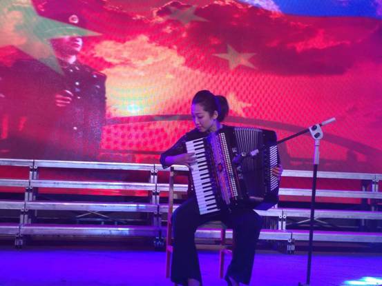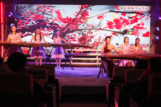 此次文艺演出由校党委主办,校团委和艺术学院承办,艺术学院师生共同参与。在演出中,师生们以舞蹈、器乐、歌唱等多种方式共同演绎了《永远跟党走》《我为祖国守大桥》《走进新时代》《唱支山歌给党听》《不忘初心》等多个红色经典曲目,以明快的曲目欢庆祖国进入新时代。
