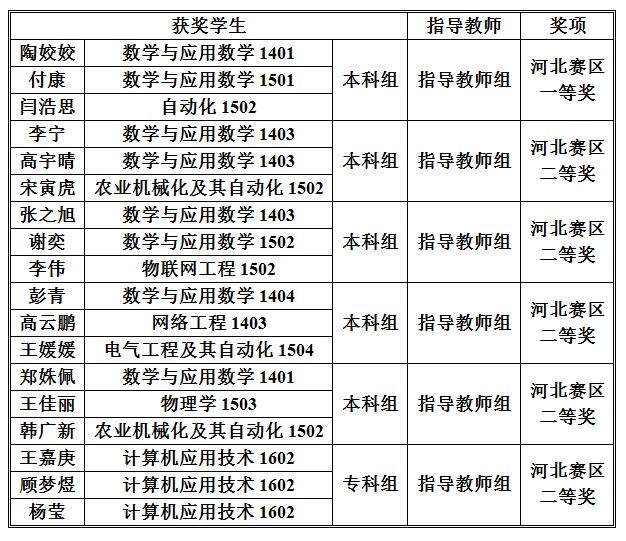 近日,2017年 “高教社杯” 全国大学生数学建模竞赛获奖名单正式公布。Beat365获得河北赛区一等奖1项、二等奖5项的优异成绩。