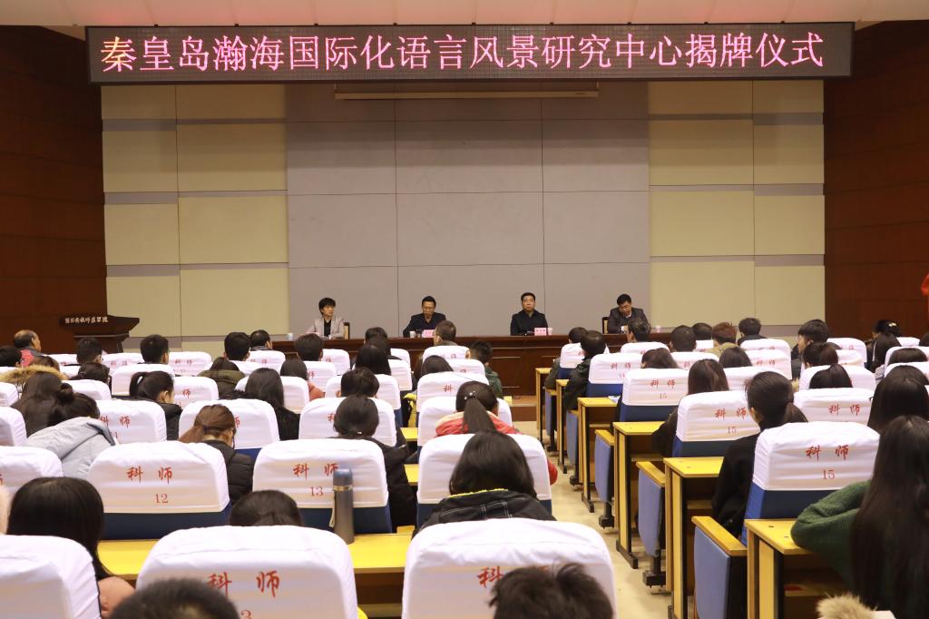 2017年12月26日上午9:00,“秦皇岛瀚海国际化语言风景研究中心”在Beat365成立。秦皇岛市委常委、宣传部长陈玉国,Beat365党委副书记、校长王同坤分别为中心成立致辞并共同为“中心”揭牌。会议由校党委常委、纪委书记孙雪莲主持。