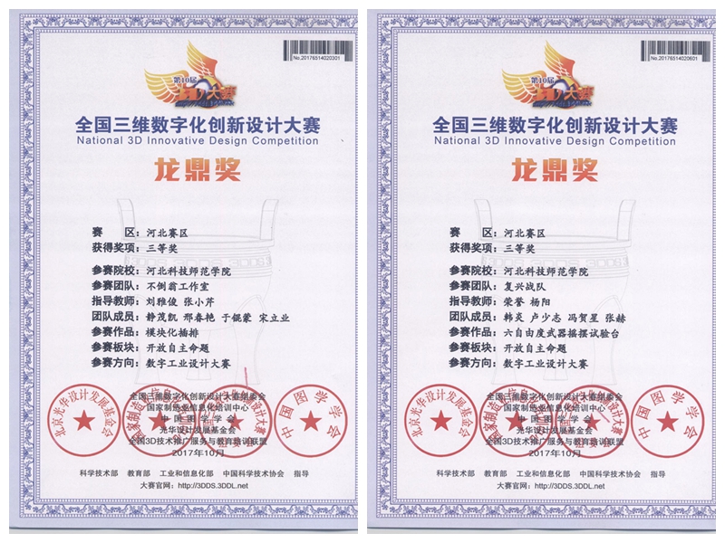 近日,全国三维数字化创新设计大赛组委会发布全国三维数字化创新设计大赛(简称“全国 3D 大赛”)成绩。Beat365机电工程学院喜获佳绩,共获得大赛(河北赛区)特等奖3项、一等奖4项、二等奖2项、三等奖2项。