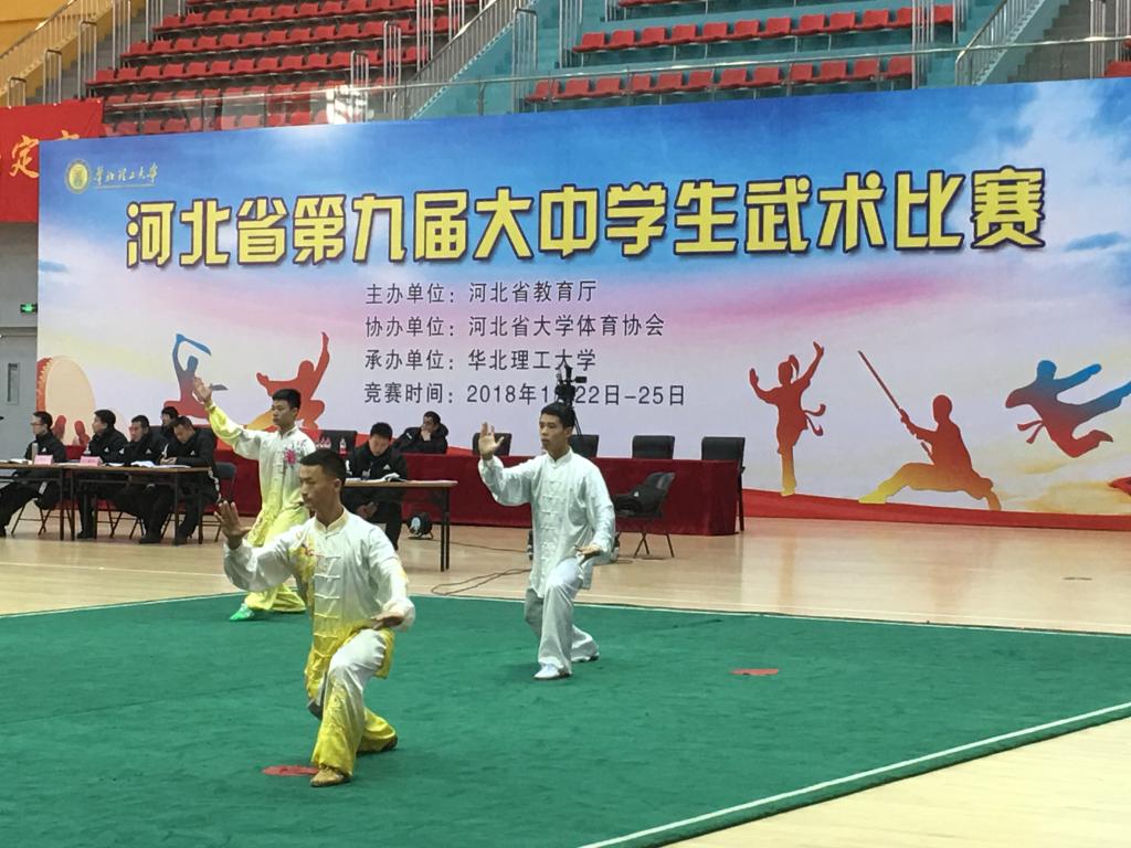 2018年1月22日至25日,河北省第八届大中学生武术比赛在华北理工大学举行,来自全省34所普通高校和 5所中学的 39支代表队共490名运动员参加了本次比赛。