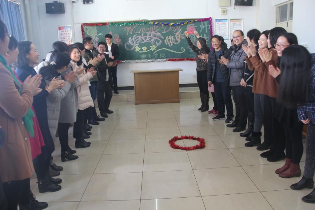 教育学院工会举办了一场团体减压游艺活动。在全体男教工的陪同下,学院女教师们度过了一个别具一格的“三八“妇女节。活动包括“数字8”游戏、“纸杯传乒乓球”、“成语接龙”、“团团圆圆”和“教院好嗓门”等游戏。整场活动持续了一个半小时,全体教职工踊跃参与,密切协作,不仅展示了学院教师群体多才多艺的良好素养,同时也获得了一次放松减压、增进健康、联络情感,凝聚人心的难得体验。