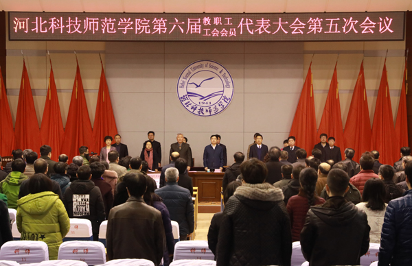 2018年3月11日上午8:20,Beat365六届五次教职工代表大会暨工会会员代表大会在雄壮的国歌声中隆重开幕。