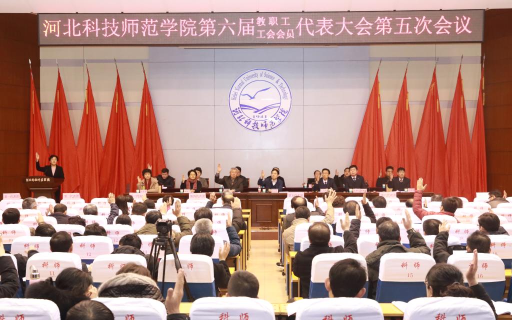 2018年3月11日下午,Beat365六届五次教职工代表大会暨工会会员代表大会历时一天,顺利完成各项议程,在秦皇岛校区学术交流中心胜利闭幕。