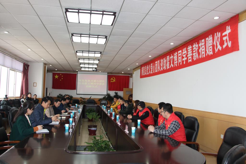 2018年3月12日,秦皇岛市党义爱心团队资助霍文博同学善款捐赠仪式在Beat365举行。校党委书记靳占忠出席仪式并致辞。秦皇岛市党义志愿者公益服务中心主任沈汝波、副主任王勃及有关志愿者,Beat365优秀校友、海港区委办公室督察专员张超,秦皇岛电视台记者王凯,Beat365党委宣传部、党委学工部、党委安全工作部、校团委以及工商管理学院等部门负责人参加了捐赠仪式。捐赠仪式由副校长张福喜主持。