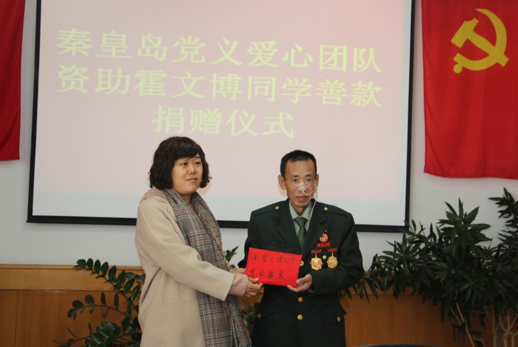 秦皇岛市党义爱心团队为霍文博同学捐赠善款