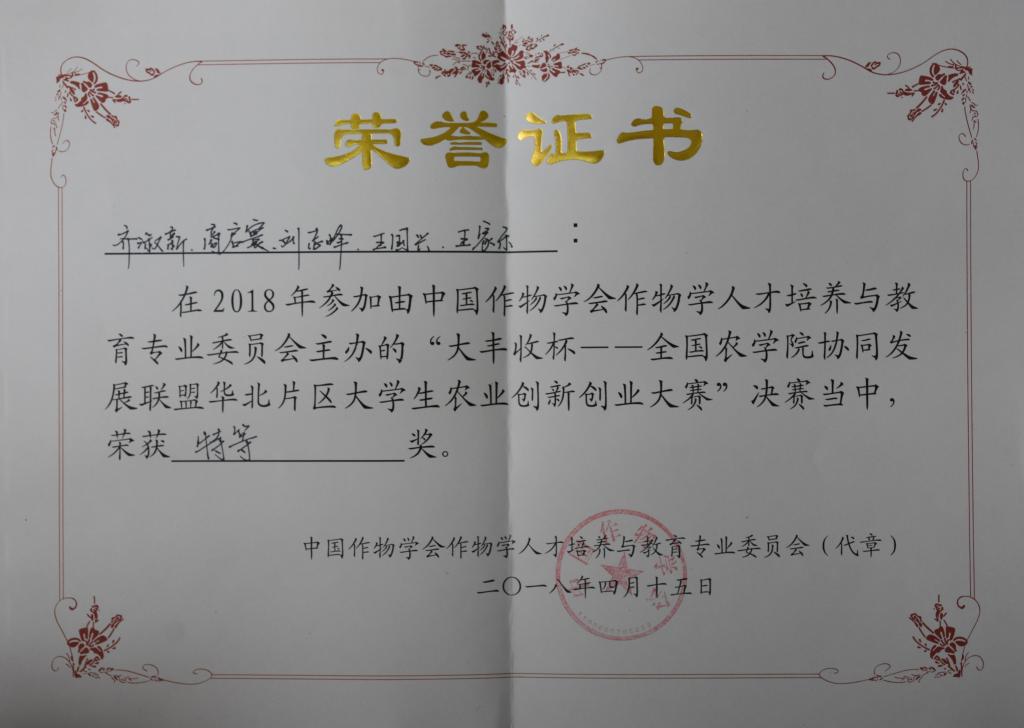 农科学子在华北区大学生“双创”大赛中获佳绩