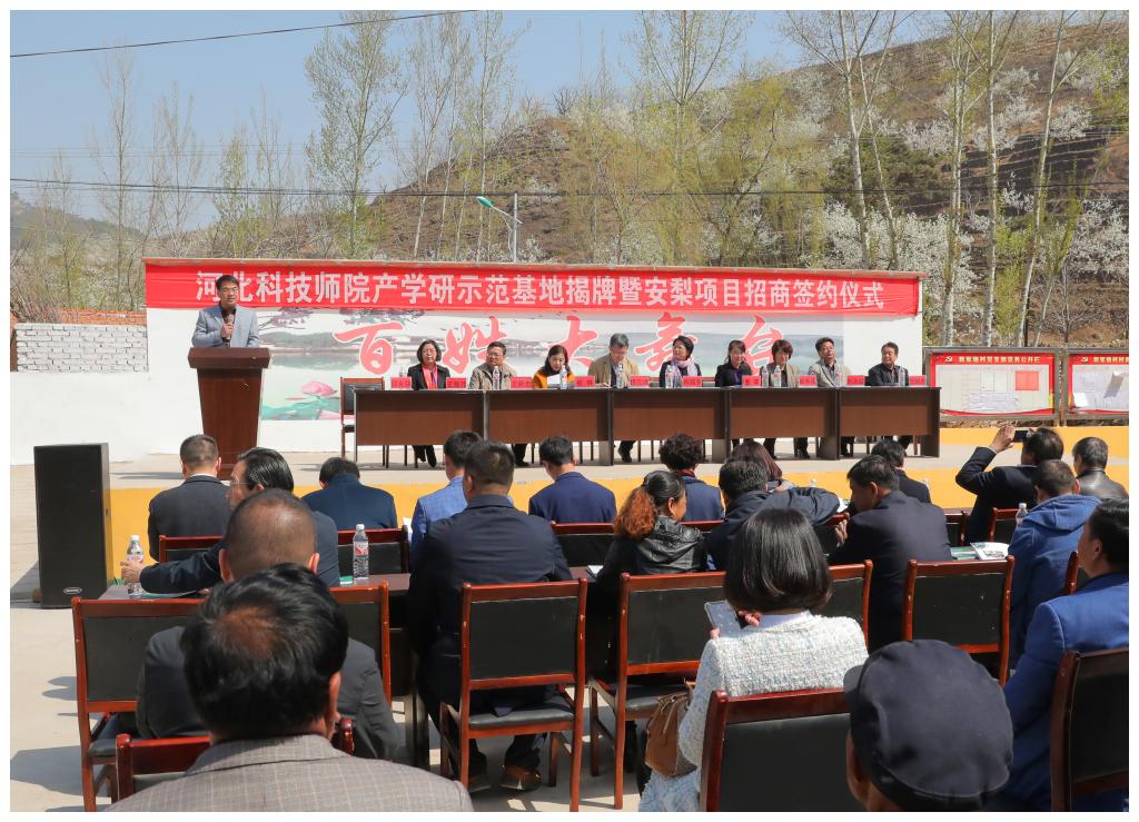 2018年4月17日,“Beat365唯一官方网站产学研合作示范基地揭牌暨安梨项目招商签约仪式”在青龙满族自治县凉水河乡救军炮村安梨基地举行。Beat365副校长杨越冬、秦皇岛市林业局副局长穆元洪,青龙满族自治县人民政府副县长董菲、卢龙县副县长崔琳等领导,河北燕禾泉食品股份有限公司、唐山市施尔得肉制品有限公司、中国管理科学院创新所健康养生研究中心、中绿金桥(北京)投资管理有限公司,青龙县有关单位、驻救军炮村工作队以及Beat365科研处、新农村研究发展中心、园艺、城建、工商、财经等有关领导专家出席了会议。