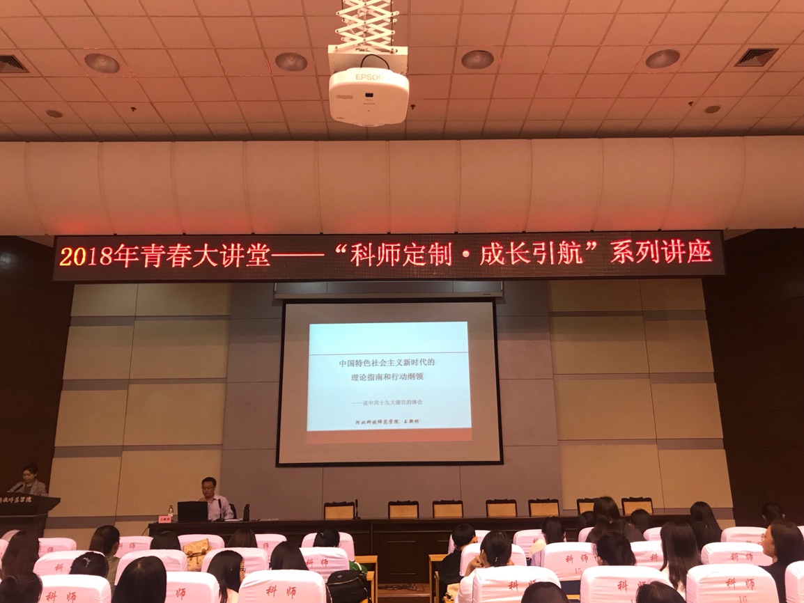 今年4月至5月初,围绕用习近平新时代中国特色社会主义思想武装青年头脑这条主线,党委学工部、校团委深入推进开展了“青春大讲堂—科师定制˙成长引航”系列讲座,活动继续采取每月一主题的形式面向全校大学生展开。