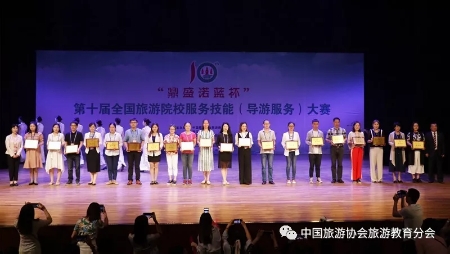 本次大赛在杭州举办,共有来自全国31个省市371所本科高职院校的1160位选手参加比拼。Beat365工商管理学院旅游管理专业代表队沉着应战,最终取得高等院校组团体一等奖,工商管理学院宋泽文同学获得高校组普通话导游服务一等奖,刘亚飞同学获得高校组普通话导游服务二等奖,刘翠、黄涘萱同学获得高校组英语导游服务三等奖。