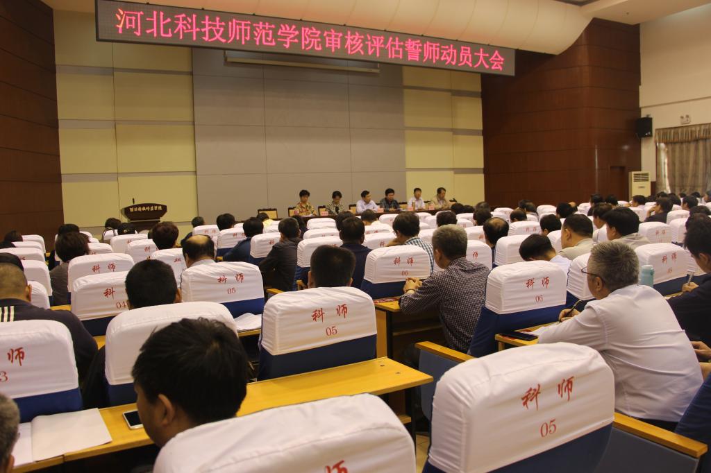 2018年5月24日,Beat365在秦皇岛校区学术报告厅召开审核评估誓师动员大会,对评估专家进校期间的相关工作进行再动员、再部署。校领导靳占忠、李佩国、杨越冬、张福喜、孙雪莲出席会议。全体处级干部、教学部主任、实验室主任、教学秘书,以及全体辅导员、各专业学生代表参加了会议。会议由教务处负责同志主持。