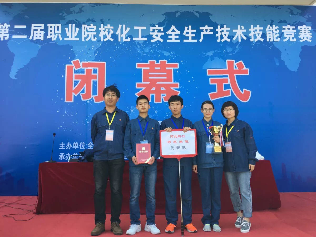 5月24日,由全国安全职业教育教学指导委员会、中国化学品安全协会主办,全国安全职业教育教学指导委员会化工安全专业分委员会承办的2018年全国职业院校化工安全生产技术技能竞赛在秦皇岛博赫科技园落下帷幕。大赛中,由化学工程学院15级应化专业王亚玲,16级应化、化工专业唐明璐和祁潇组成的代表队经过奋力拼搏,从45支代表队中脱颖而出,取得了团体三等奖的好成绩。指导教师牛奎和刘璐荣获“优秀指导教师”称号。