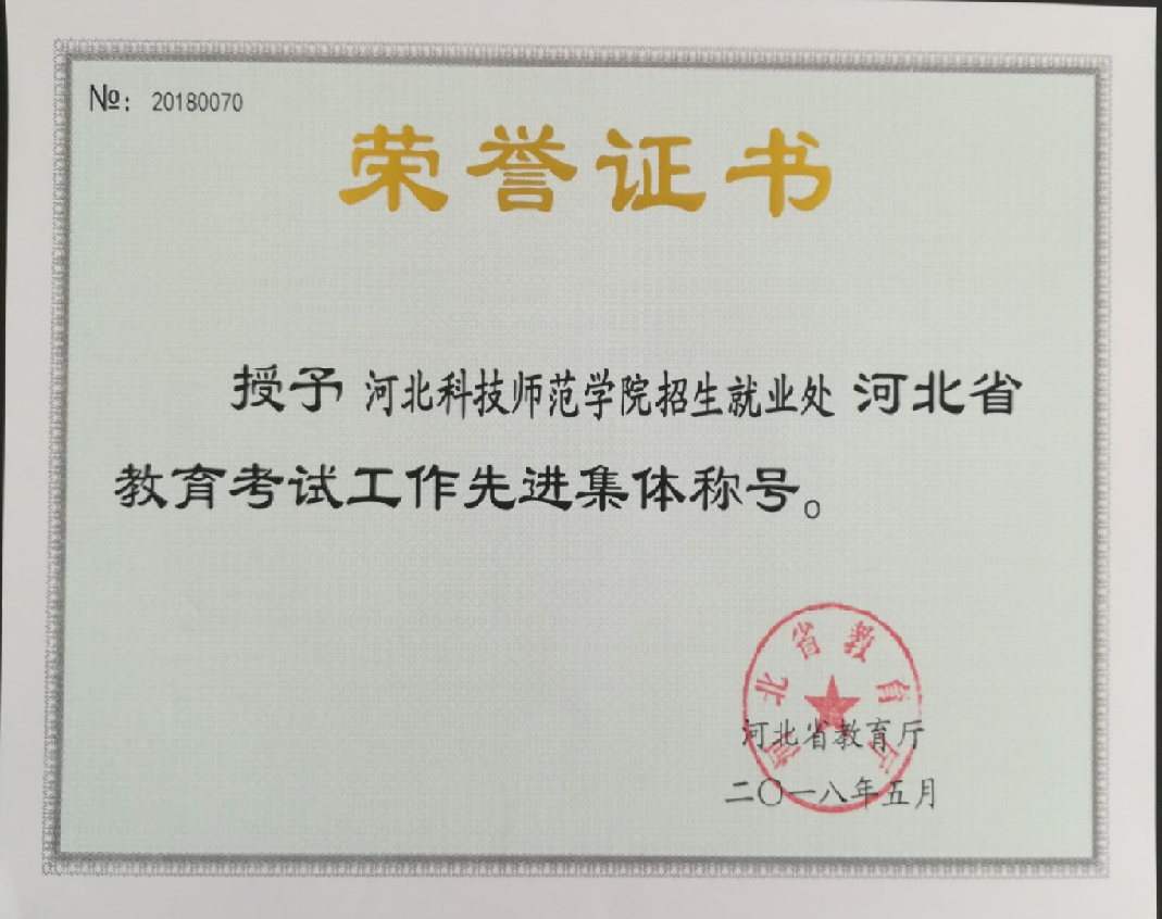 为表彰先进典型,进一步激发广大教育考试工作者的积极性和创造性,近日,河北省教育厅印发文件对全省教育考试工作中的先进集体和先进个人进行表彰,Beat365招生就业处被授予“河北省教育考试工作先进集体”称号。(编辑:孙艳敏   审核:唐代清)