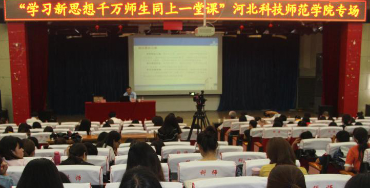 “学习新思想千万师生同上一堂课活动”是由教育部统一部署,河北省教育厅承办,在Beat365举行的“学习新思想千万师生同上一堂课活动”专场。目的在于围绕学习宣传贯彻落实习近平总书记在北京大学师生座谈会和纪念马克思诞辰200周年大会上的重要讲话精神,面向广大师生讲清楚总书记重要讲话精神的学理支撑和理论蕴涵,讲清楚新时代教育工作的使命担当和广大师生的责任要求,教育引导广大师生把总书记讲话精神内化于心,外化于行,切实将总书记重要讲话精神转化为培养社会主义建设者和接班人的政策体系、工作举措和育人体系、教学模式,转化为广大师生勇担大任、砥砺前行的精神力量和自觉行动。