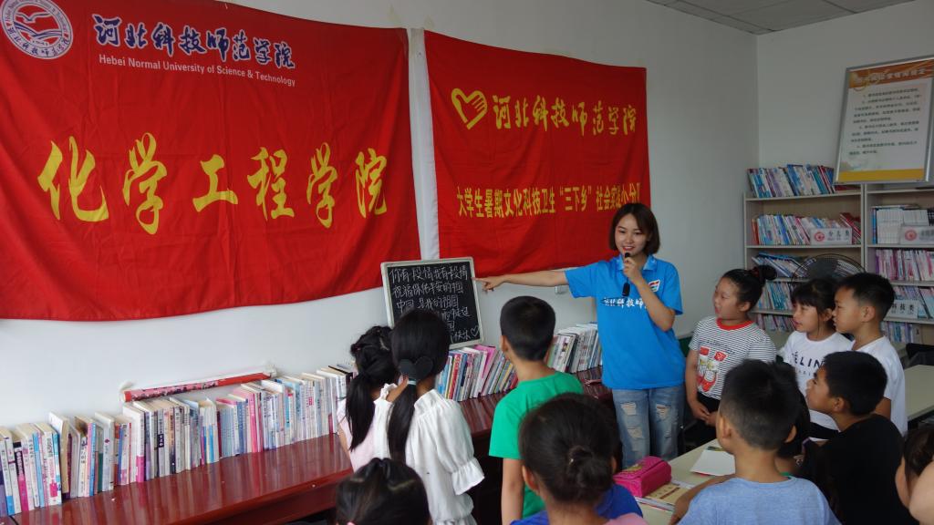 由于农村条件的限制,很多孩子们无法得到良好的教育。为了满足孩子们的需求,实践队员结合学校师范专业特色,运用心理学、教育学知识,与孩子们建立了良好的师生关系,使孩子们敞开心扉,勇于表达;针对孩子们的兴趣爱好,“化梦筑情”小分队开设了“字母乐园”、“巧巧手”、“传统知识讲座”、“绘画小天地”“歌声与微笑”、“乘法小九九”、“文学讲堂”、、“杯子舞”等特色课堂,丰富孩子们的业余生活的同时为孩子们辅导了“数学”、“语文”、“英语”等文化课程。为了培养孩子们的爱国情怀,弘扬社会主义核心价值观,小分队特别开设了“红歌系列课堂”和“初心使命宣讲”。在“爱在心间”课程上,队员教导着孩子们要学会感恩国家,感恩父母。除此之外,队员们还通过“求真实验室”,从“生活常识”、“食品安全”、“环境保护”、“娱乐方式”四个方面,为他们解释了原理,从生活中常见的方面入手,为学生普及知识。孩子们在学习到了知识的同时,又体会到了生活的乐趣。志愿者们给那里的45个孩子不仅传授了知识,还带去了欢乐。