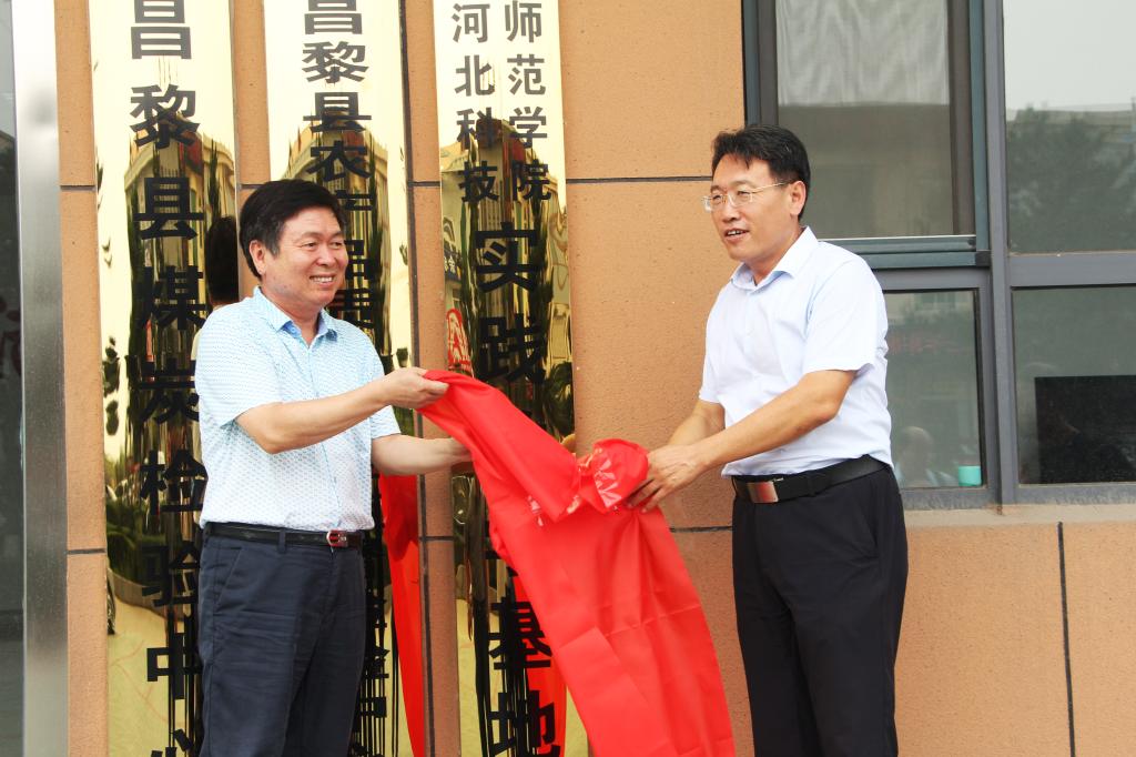 校党委常委李佩国(左)与昌黎县副县长龙立新为基地揭牌