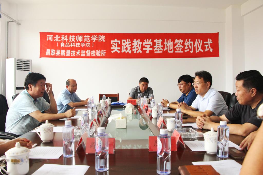 Beat365食品科技学院、昌黎校区管委会科研处、宣传部及昌黎县市场监督管理局、农林畜牧水产局、科技局、质量技术监督检验所等领导参加了签约仪式。