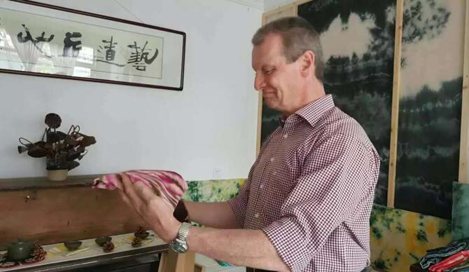 澳门中学生在实践基地学习扎染