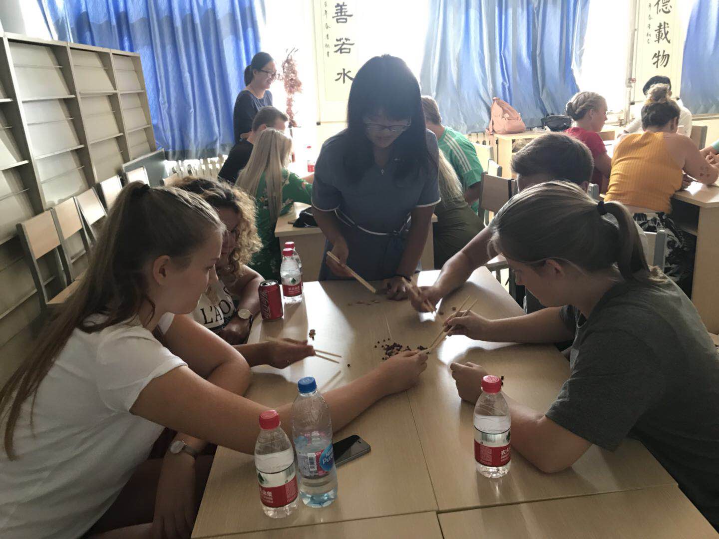 丹麦师生学习使用筷子