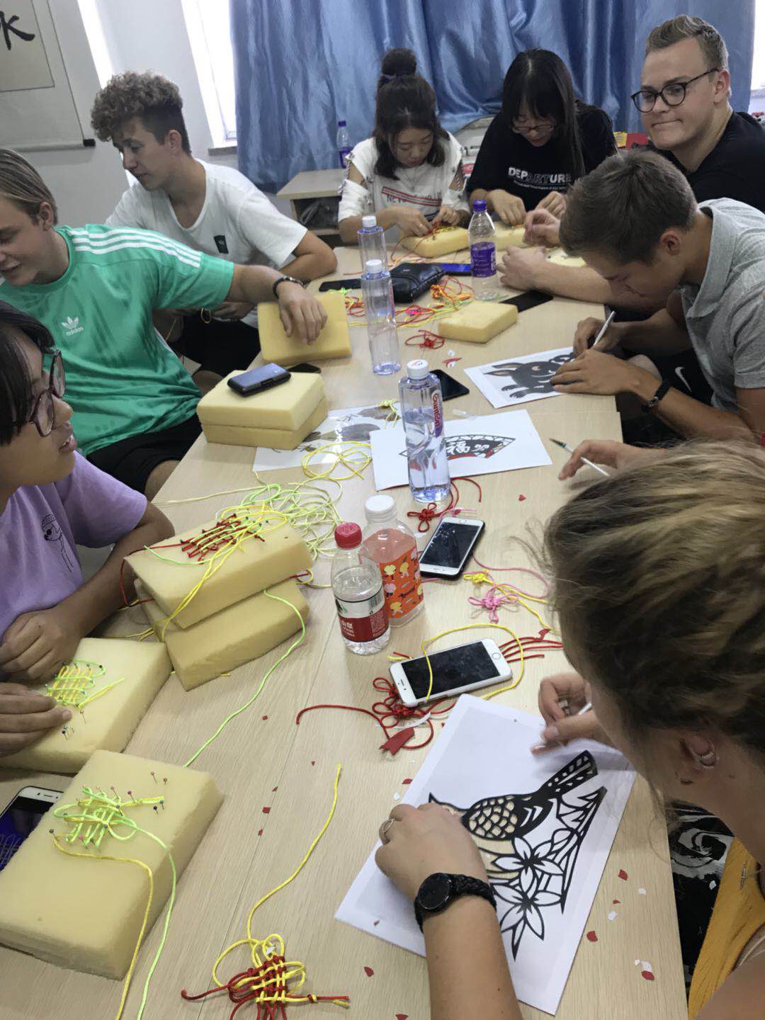 丹麦师生学习中国结编制和刻纸