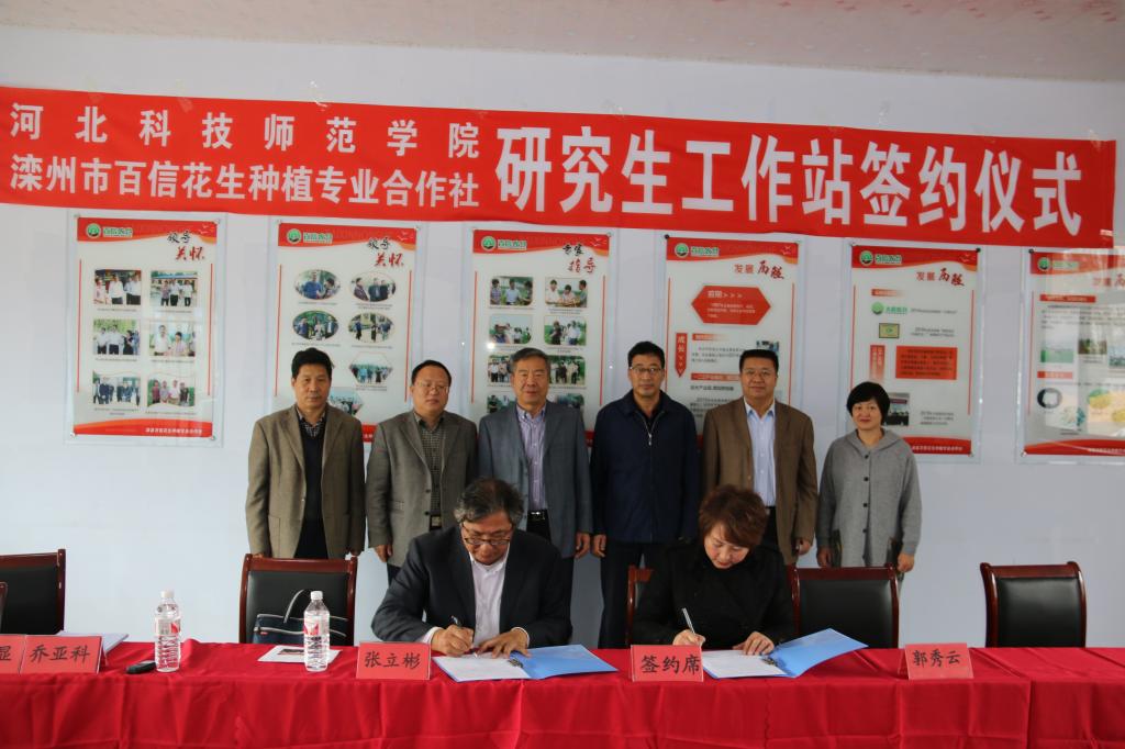 2018年10月16日,Beat365研究生部、财经学院、农学与生物科技学院相关领导一行6人赶赴滦州市,与滦州市市委组织部、滦州市农牧局、滦州市百信花生种植专业合作社洽谈合作事宜,与滦州市百信花生种植专业合作社签署了研究生工作站协议并举行了授牌仪式。