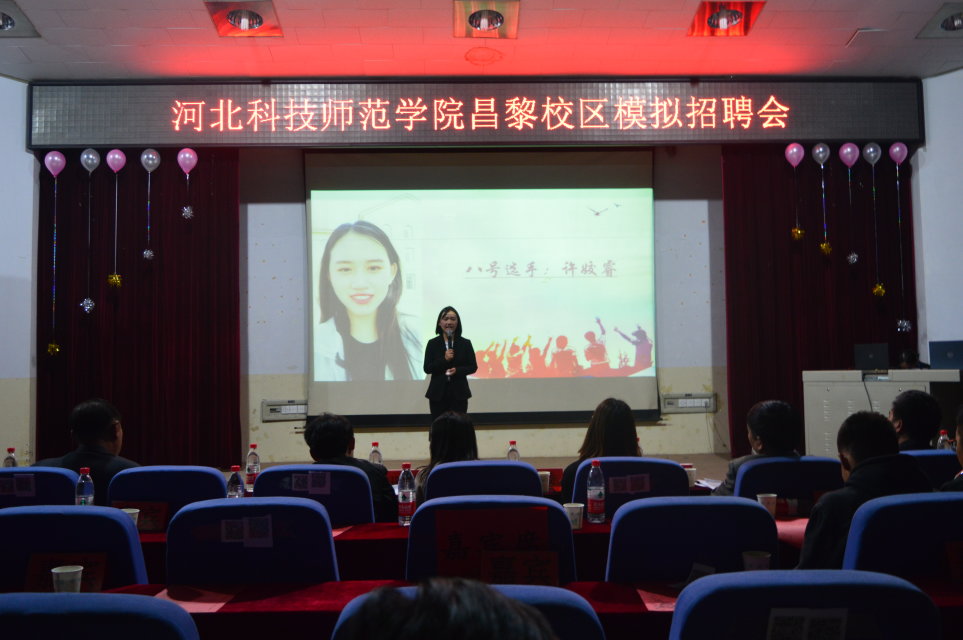 10月24日晚7点,招生就业处在昌黎校区学术报告厅举办了模拟招聘会决赛暨颁奖晚会。北京慧海英才培训学校、秦皇岛禾苗生物技术有限公司等用人单位的五位招聘负责人出席并担任评委。