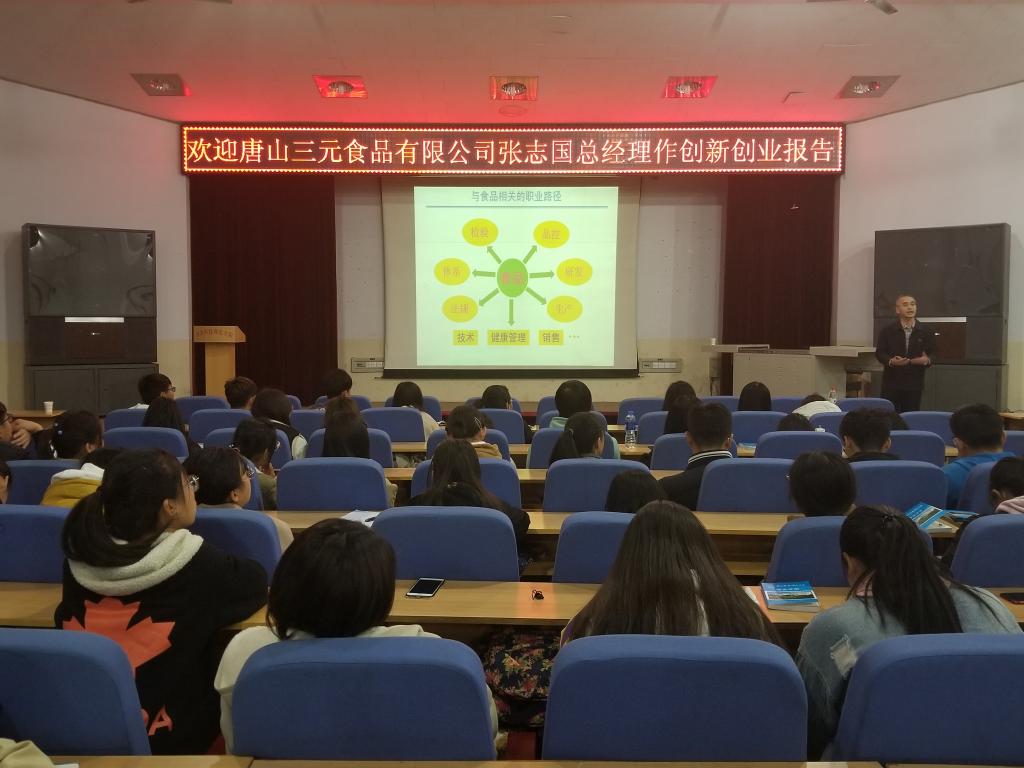 10月30日上午10:00,食品科技学院邀请唐山三元食品有限公司张志国总经理在学术报告厅作关于“职业发展与思考”主题报告。学院近400名同学参加了此次活动。