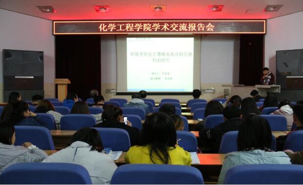 2018年10月31日下午,化学工程学院在昌黎校区学术报告厅举办学术交流报告会,学院全体教师及学生出席了本次活动。2016级研究生井亚斌做了题为《环保型氧化石墨烯基海洋防腐涂料的研究》的报告,介绍了海洋防腐材料对轮船防腐的重要意义及实验研究的艰辛过程、获得的阶段性成果;研究生导师张志伟博士做了题为《光催化材料对治理海水污染的研究》的报告,张志伟博士从秦皇岛发生的“荧光海”开始,介绍了光催化材料对于防治污染和重要意义和效果。报告语言幽默诙谐、层层递进,使枯燥的学术用语通俗易懂。汇报结束后,张博士和井亚斌耐心地为每位提问的同学答疑解惑。