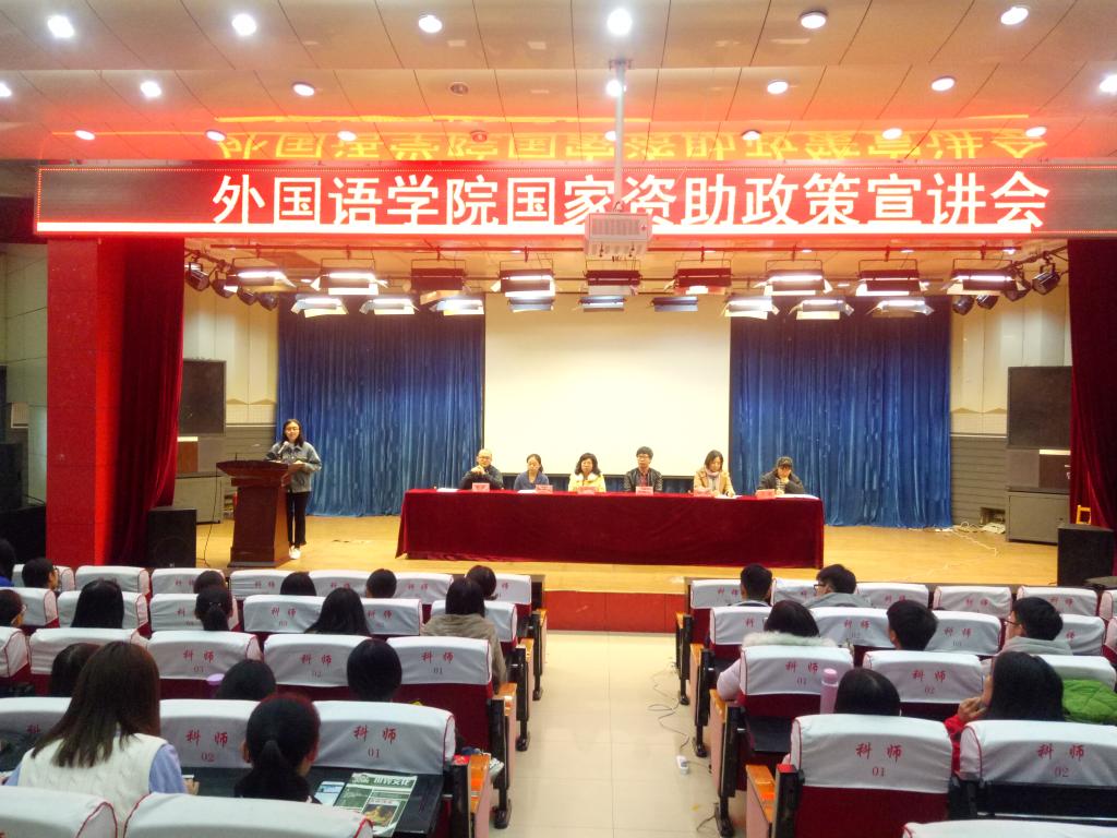 11月1日下午,外国语学院在开发区校区召开国家资助政策宣讲会。学院负责资助工作的老师介绍了本学年学生资助工作情况。国家奖学金获得者宋迁、国家励志奖学金获得者代表赵景景、国家助学金获得者代表石佳逸先后在会上发言。学工办负责老师就资助政策体系、国家奖助学金的相关政策和助学贷款的相关政策进行了详细讲解,并强调了按时还款的信用问题,通过举例,让同学们更加清晰地认识到了守信的重要性。希望受到学校资助的学生常怀感恩之心,做一个“自尊、自信、自立、自强”的人,用乐观、积极的心态,顽强拼搏的精神克服暂时的困难,珍惜这来之不易的机会,发奋读书,刻苦学习立志成才,将来更好地回报社会。