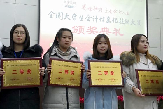 此次大赛由工业和信息化部人才交流中心主办,新道科技股份有限公司和河北经贸大学经济管理学院承办。全省共有70支队伍、280名学生参加了比赛。大赛采用虚拟商业社会环境财务竞赛平台,参赛团队以多人多岗位的方式完成会计业务,将课堂理论与实践教学紧密结合。经过参赛选手的协力拼搏,由胡博阳、董长蕊、刘晨轩、张瑞晓四位同学组成的参赛团队和贾晓雅、何琼、韩艳平、张嘉悦四位同学组成的参赛团队,双双获得团体二等奖。指导教师高建立、王晓东获得优秀指导教师荣誉称号。(编辑:孙艳敏  审核:唐代清)