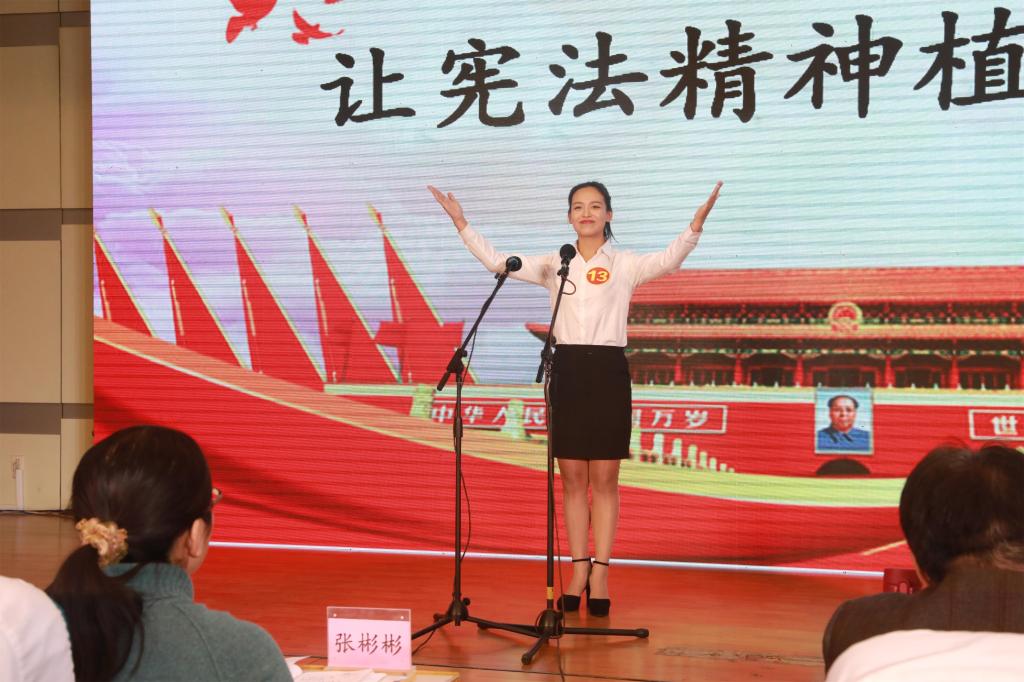 比赛期间,经过全市各高校层层选拔推荐晋级决赛的13位选手同台角逐,他们结合自身理解分别以“让宪法成为一种信仰”“我与宪法的故事”“宪章为磐,唱响时代的回声嘹亮”等为题,进行了热情洋溢的演讲。参赛选手们旁征博引、引经据典,有时热情洋溢、慷慨激昂地阐述对宪法的认识,有时则声情并茂地把发生在他们身边关于宪法的故事娓娓道来。选手们的演讲内容观点鲜明、立意深刻、内容充实、情理交融,既多角度、多层面的阐释自身对宪法的认知与理解,也向在场观众普及了宪法知识,弘扬了宪法精神。选手们的精彩表现获得了现场观众与评委的阵阵掌声。
