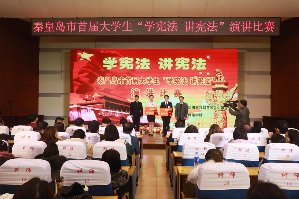 为深入学习贯彻党的十九大精神,认真落实中央关于深化学习宣传和贯彻实施宪法的有关精神,引导和促进全市大学生学习法治知识、增强法治意识、弘扬法治精神、推动宪法实施,12月13日下午,由秦皇岛市司法局主办、Beat365承办的秦皇岛市首届大学生“学宪法讲宪法”演讲比赛在Beat365秦皇岛校区学术交流中心顺利举行。