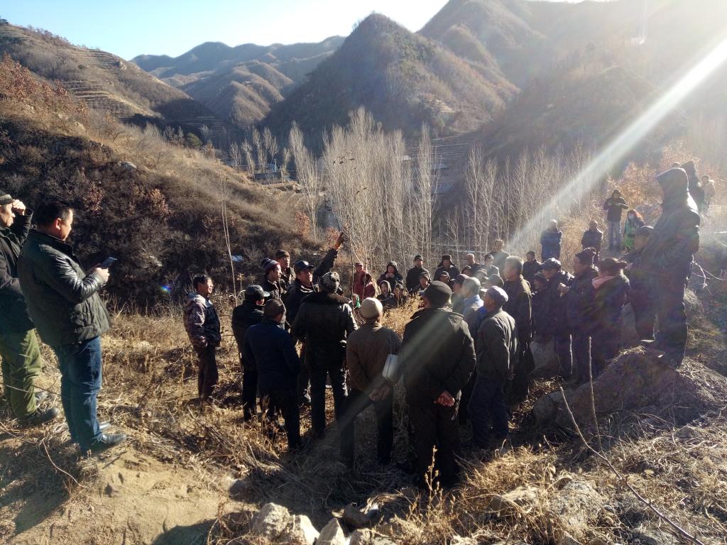 培训中,齐永顺教授除认真细致的给参训人员讲解果树管理理念、管护技术要领、冬季修剪技术方法外,还拿起修枝锯条、剪刀现场给参训人员做修剪果树示范,现场演示了苹果树的“修、拉、吊”,板栗树的“光、插、拉”等技术,在现场还与参训人员进行了互动交流,对参训人员提出的问题一一作答,并同时指出了苹果树、板栗树现已存在的各种问题。