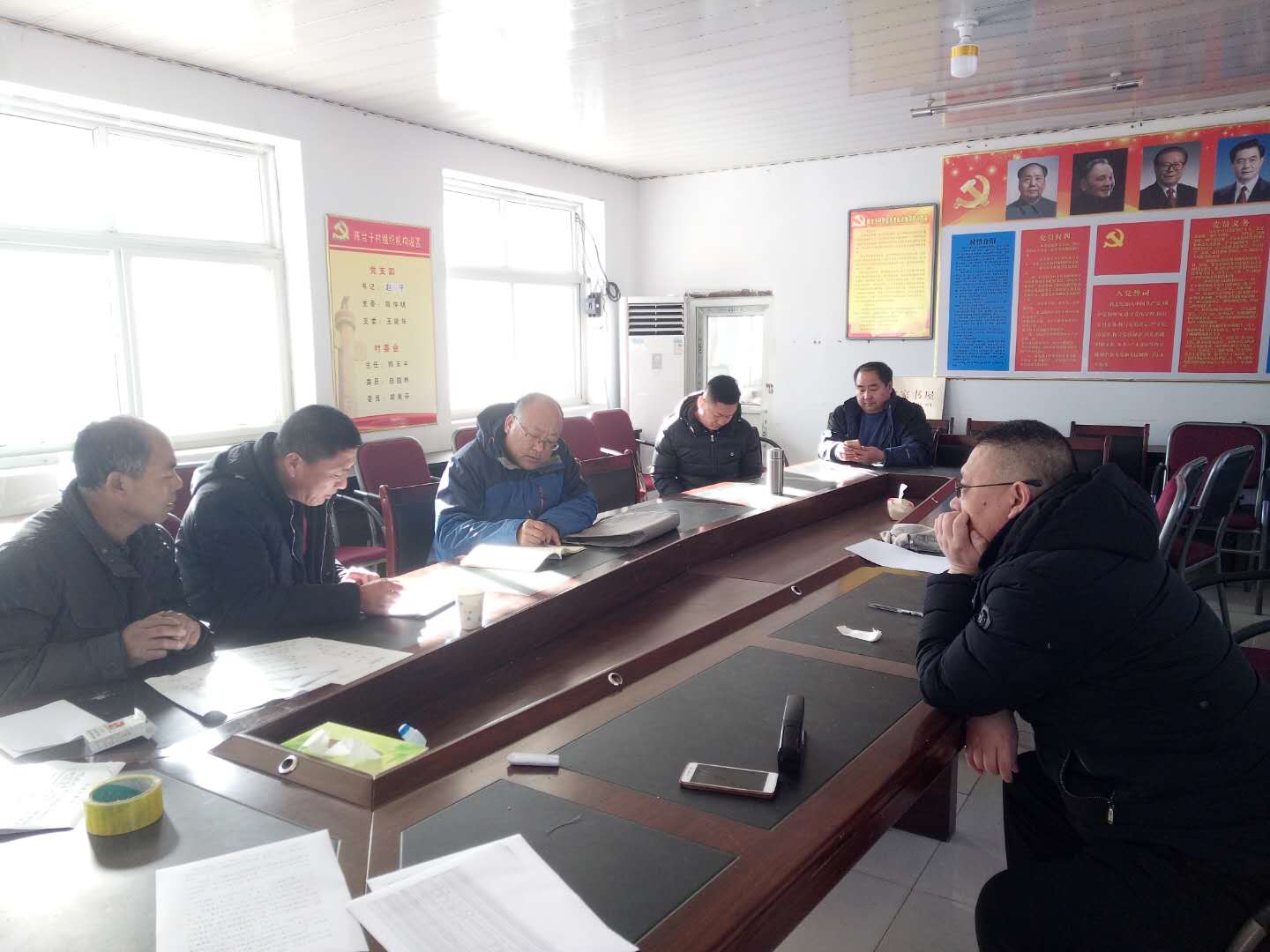 2019年1月4日上午,青龙县大巫岚镇党委书记王金保、副镇长杨财、王志博等领导带领办公室、民政所工作人员到陈台子驻村组织召开村两委班子、工作组成员迎国检工作调度会。